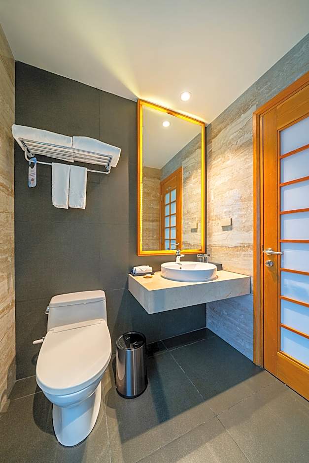 Deluxe Twin Room is 344 square feet and includes 2 single beds 80-130 width plus balcony, desk, cable tv, hairdryer, bathrobes, and slippers and is Wheelchair-accessible.